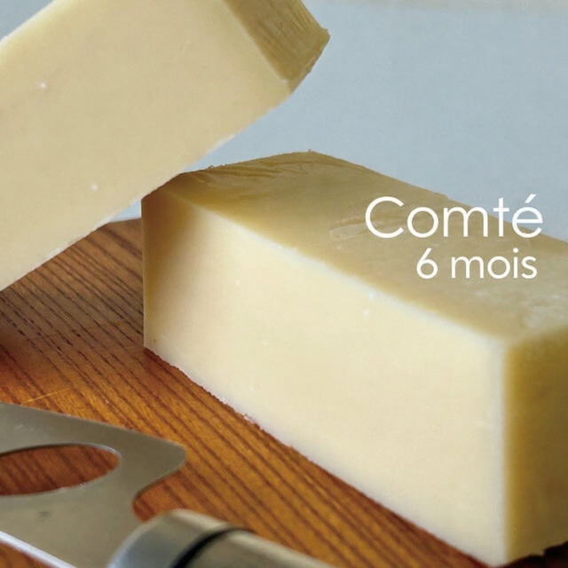 コンテ 6ヶ月熟成(Comté AOP) フランス東部ジュラ山脈で1000年以上の歴史を持つ、フランスを代表する熟成ハードチーズ「コンテ(Comté)」。 年間約60,000トンと、フランス産AOPチーズの中で最も生産量が多く、世界中で愛されているチーズです。 生産地域はAOPにより、フランシュ・コンテ地方(ジュラ県・ドゥー県)およびアン県にまたがるジュラ山脈一帯と定められています。 標高の高い山々で放牧された牛は、576種類もの草花を食べて育つといわれ、その豊かな自然がミルクに奥行きを与えています。