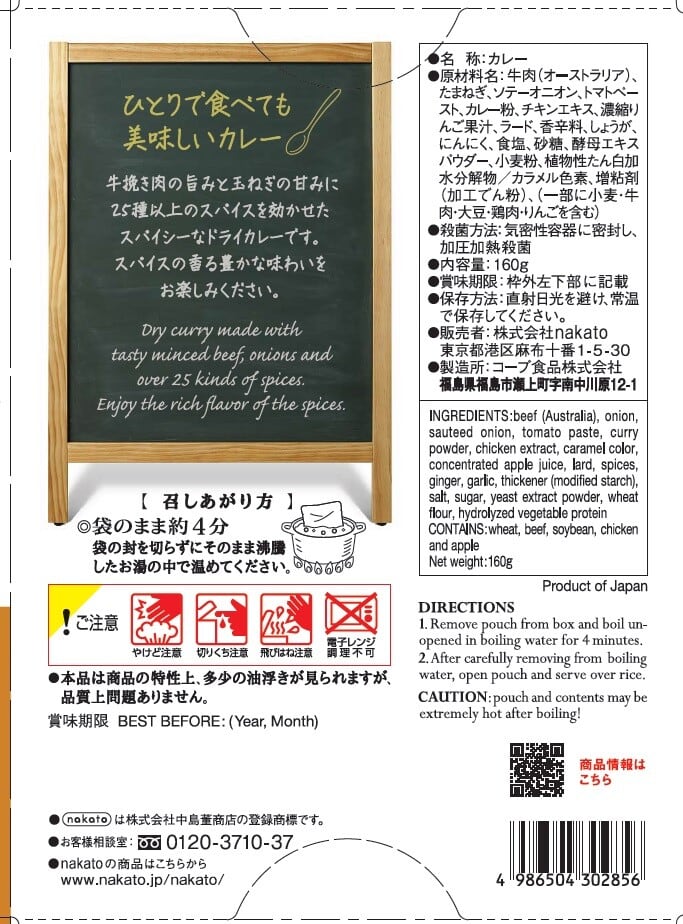 【nakato麻布十番シリーズ ドライカレー 玉ねぎの甘みと香り立つスパイス(160g)】